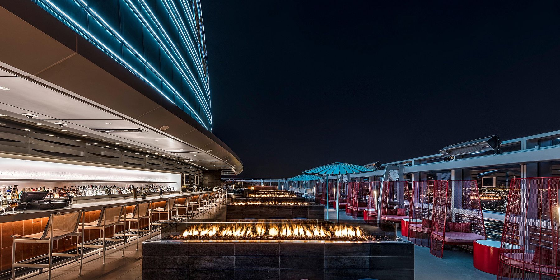 Guests enjoy stunning views of the city skyline while sipping cocktails inspired by desert flavors.